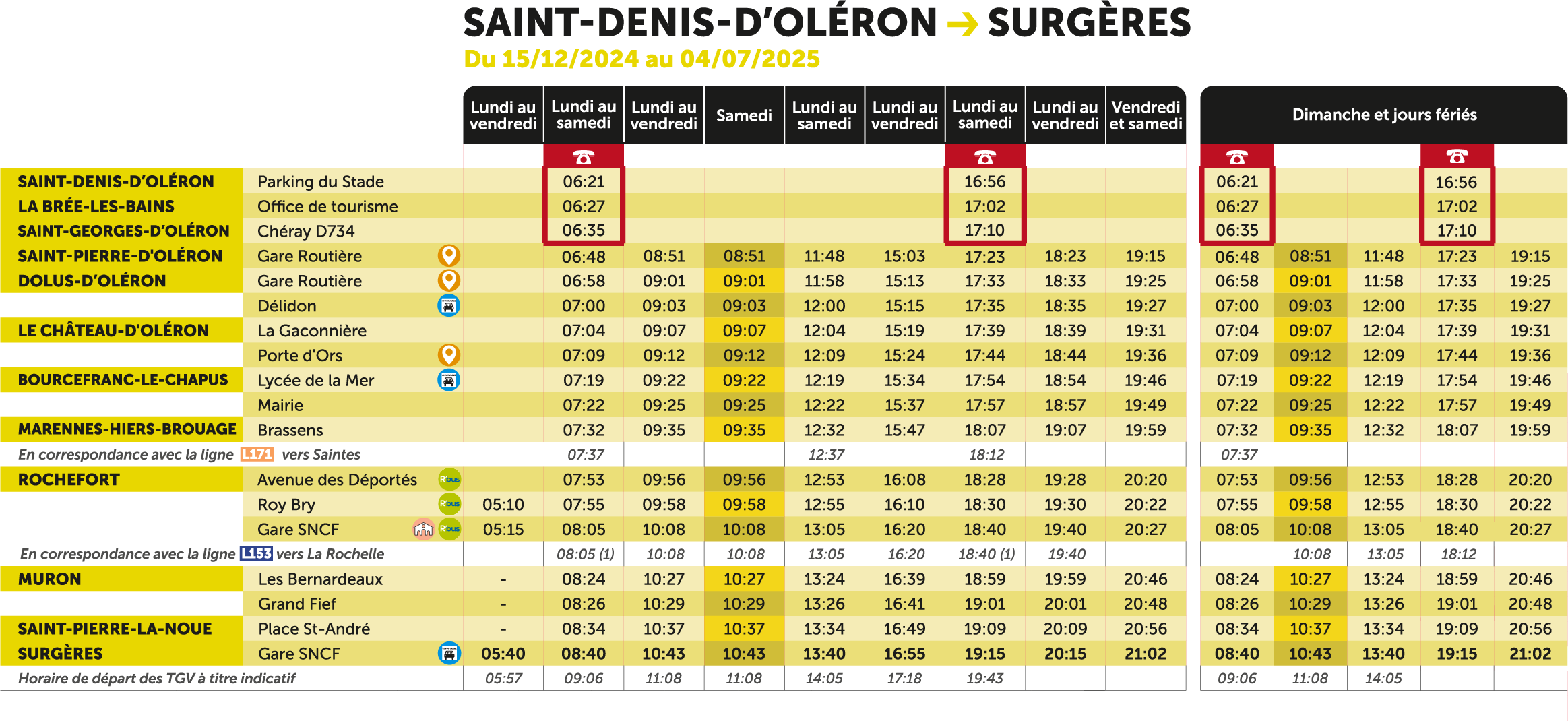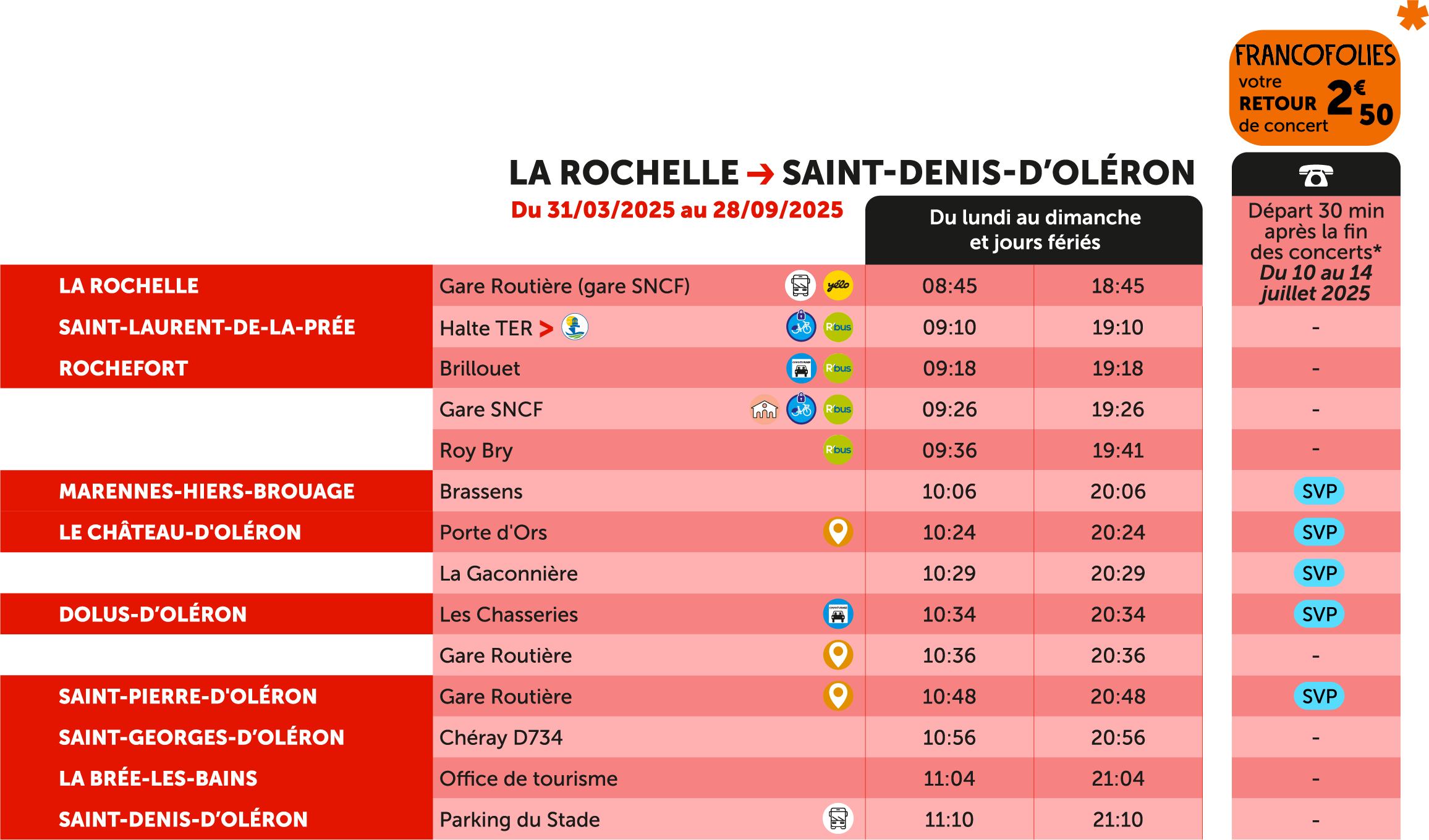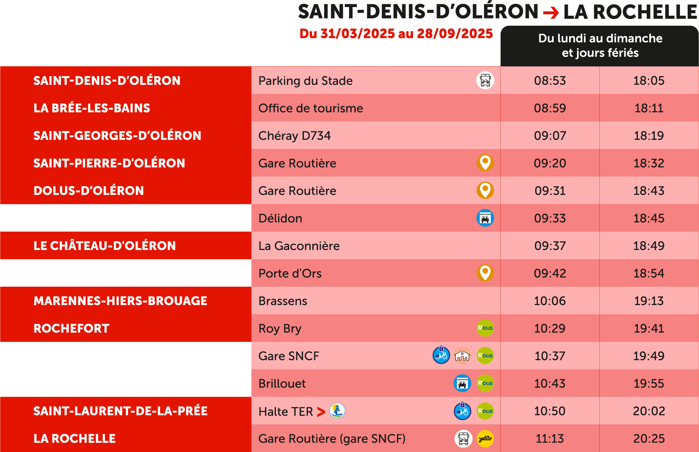 Lignes vers Oléron