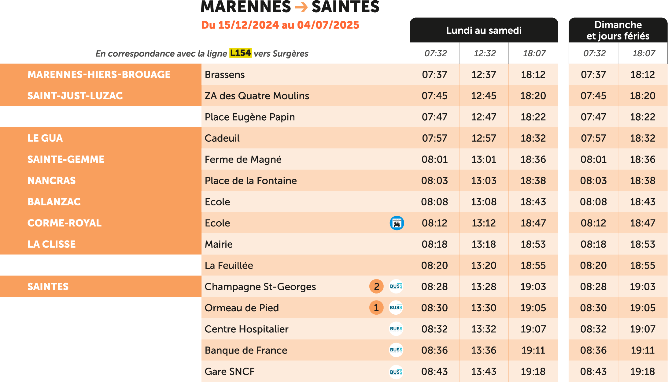 HORAIRES L154